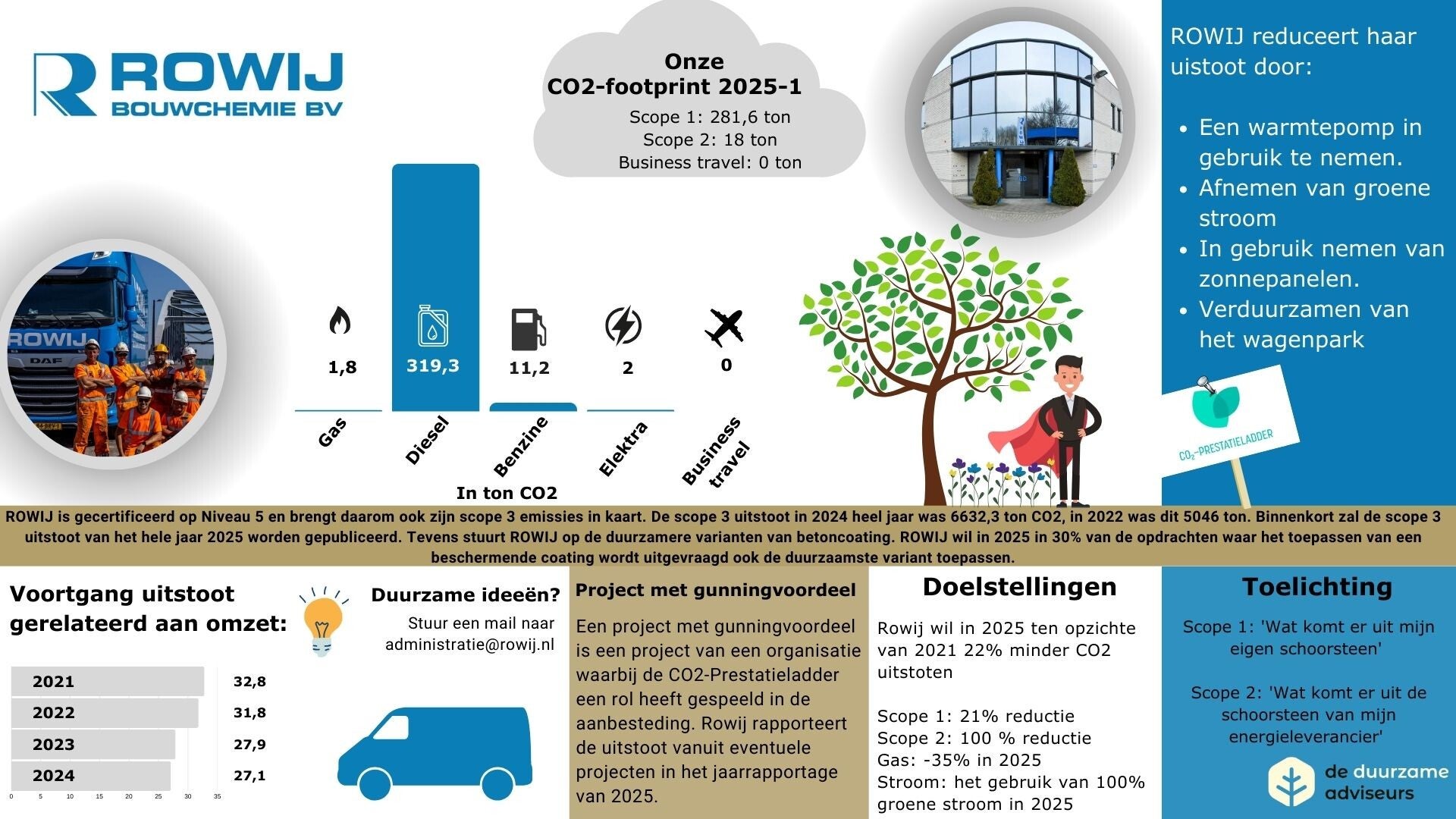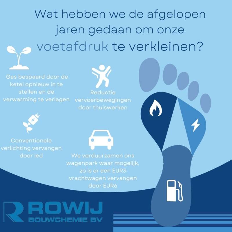 Rowij heeft reductiedoelstellingen opgesteld om effectief haar CO²-uitstoot te reduceren. Er zijn reductiemaatregelen opgesteld om deze doelstelling te behalen. Deze worden ieder half jaar beoordeeld op hun effectiviteit.